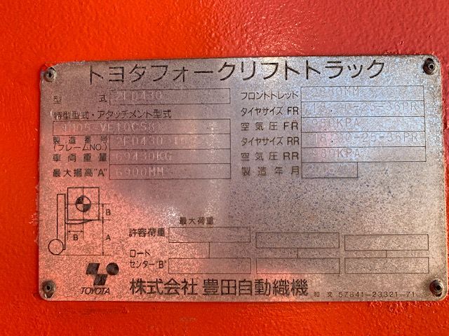 2006y TOYOTA TOP LIFTER 2FD430 16,507hrs. (KOBE)